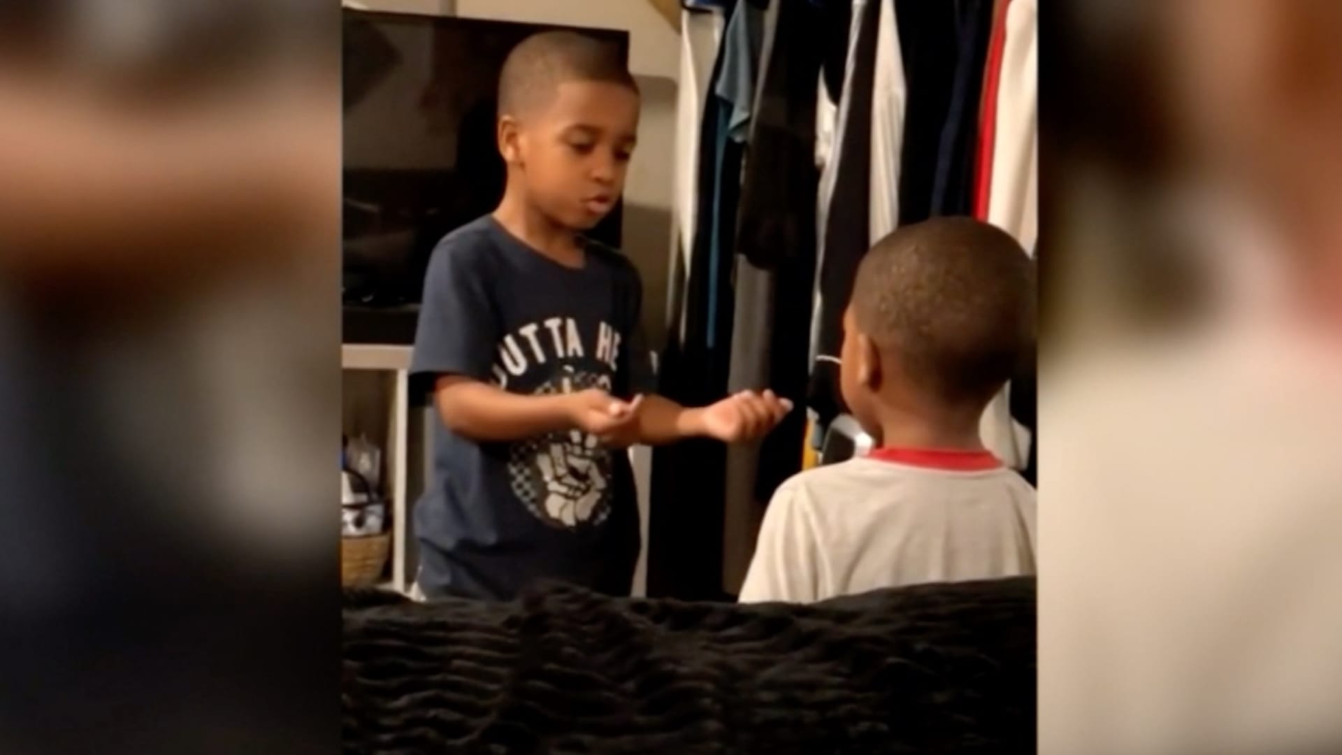 شاركت والدة مقطع فيديو لابنيها، سرعان ما انتشر بشكل كبير على وسائل التواصل الاجتماعي، ويظهر الأخ الأكبر ذو الـ6 أعوام وهو يساعد شقيقه الأصغر على تجاوز نوبة غضبه والهدوء بتمارين التنفس.