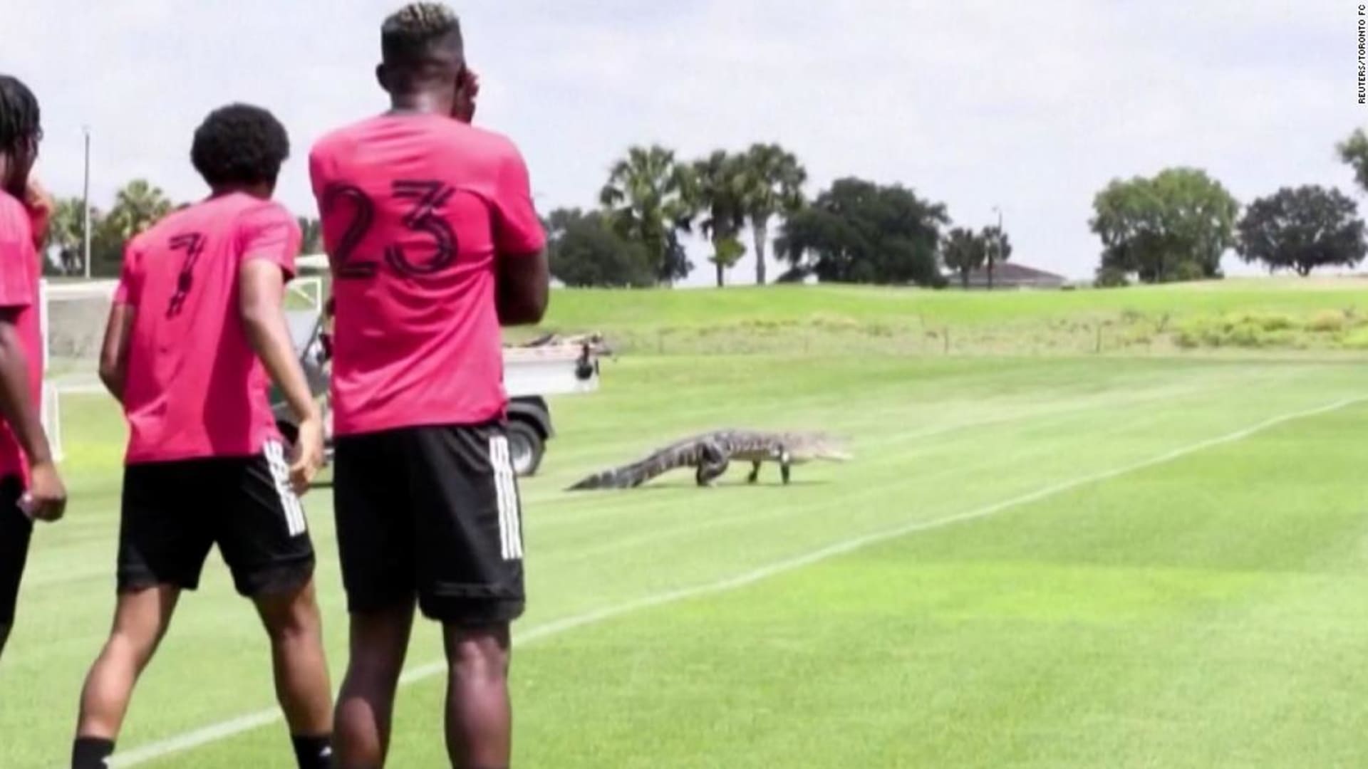 تفاجأ لاعبو نادي “تورنتو” في فلوريدا، باقتحام تمساح ضخم أرضية الملعب، خلال حصة تدريبية للفريق.
