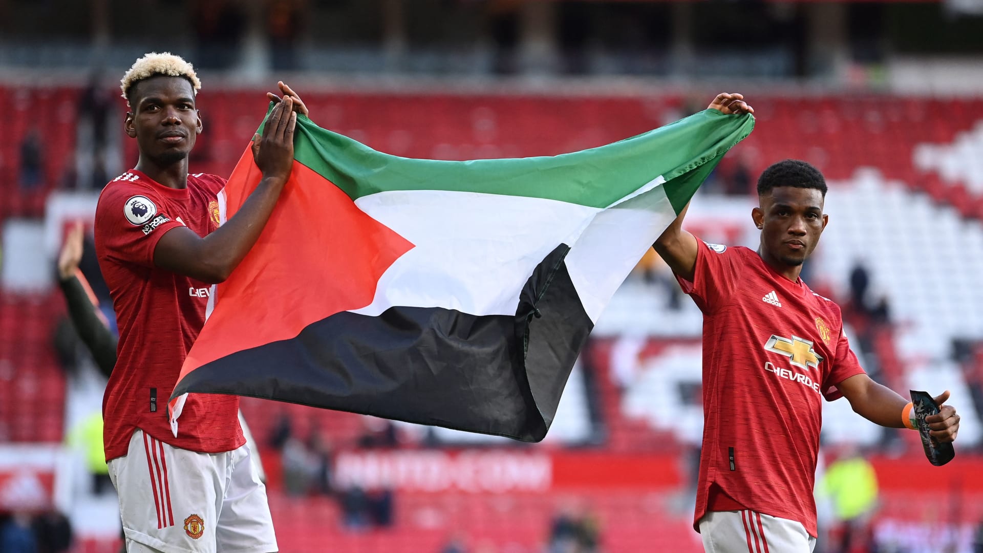 دبي، الإمارات العربية المتحدة (CNN) – في لفتة مشابهة لما قام به لاعبا ليستر سيتي، حمزة تشودري وزميله ويسلي فوفانا، رفع لاعبا مانشستر يونايتد، النجم الفرنسي بول بوغبا والإيفواري أماد ديالو، العلم الفلسطيني في ظل الأحداث التي يشهدها الشرق الأوسط.