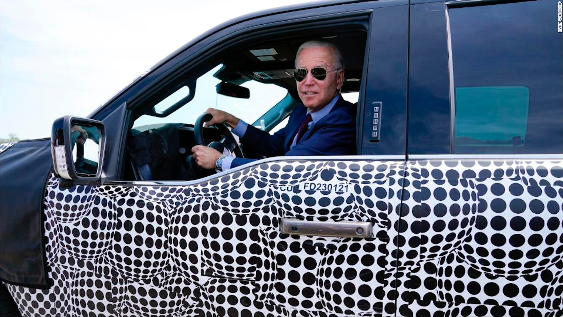 جرّب الرئيس الأمريكي جو بايدن شاحنة فورد الكهربائية خلال اختبار قيادة بعد تحدثه إلى عمال السيارات في ديربورن، ميشيغان.