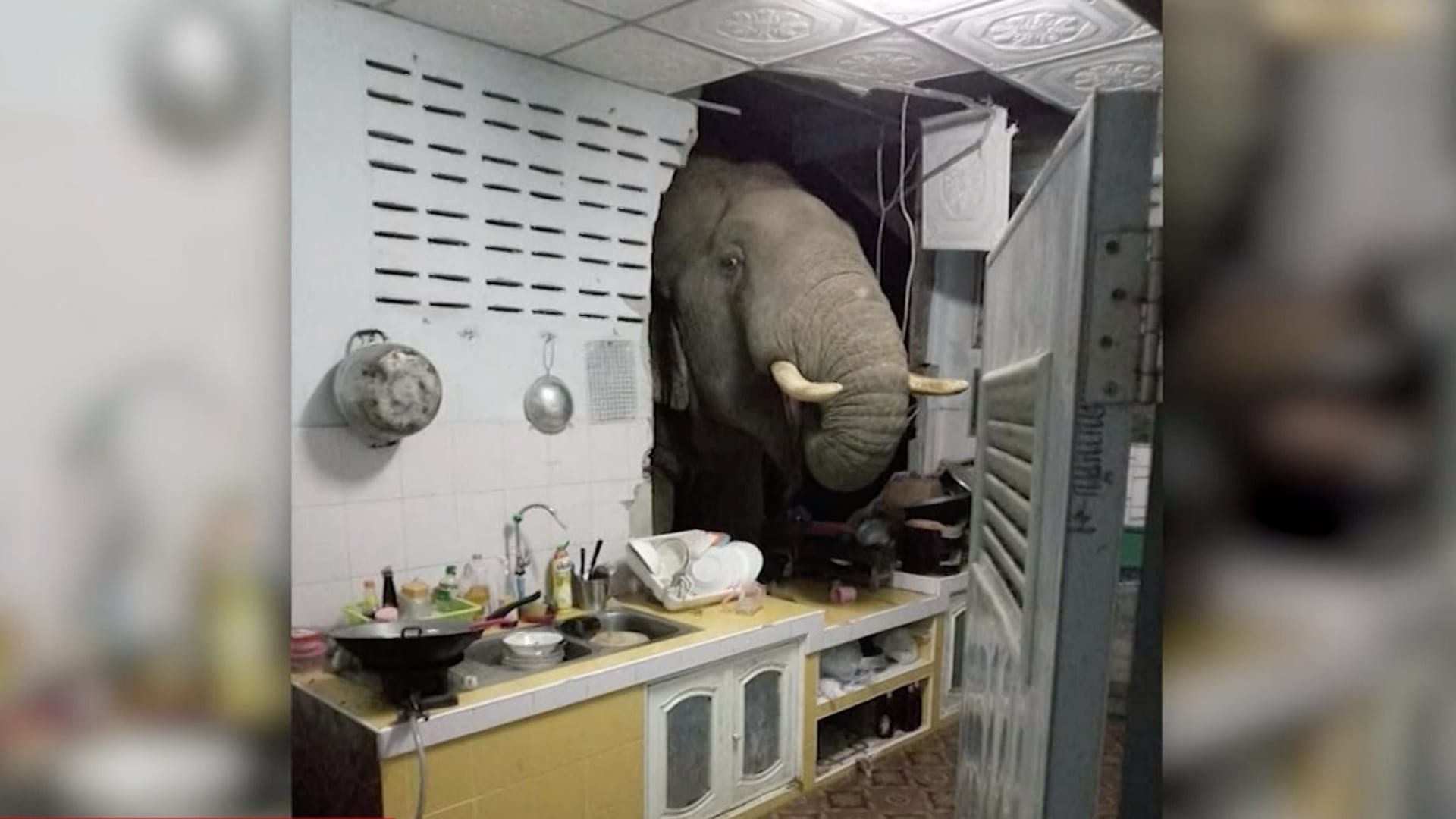 لحظات رعب وثقتها الكاميرا.. فيل ضخم يقتحم مطبخًا ودب يهاجم السيارات ليلاً