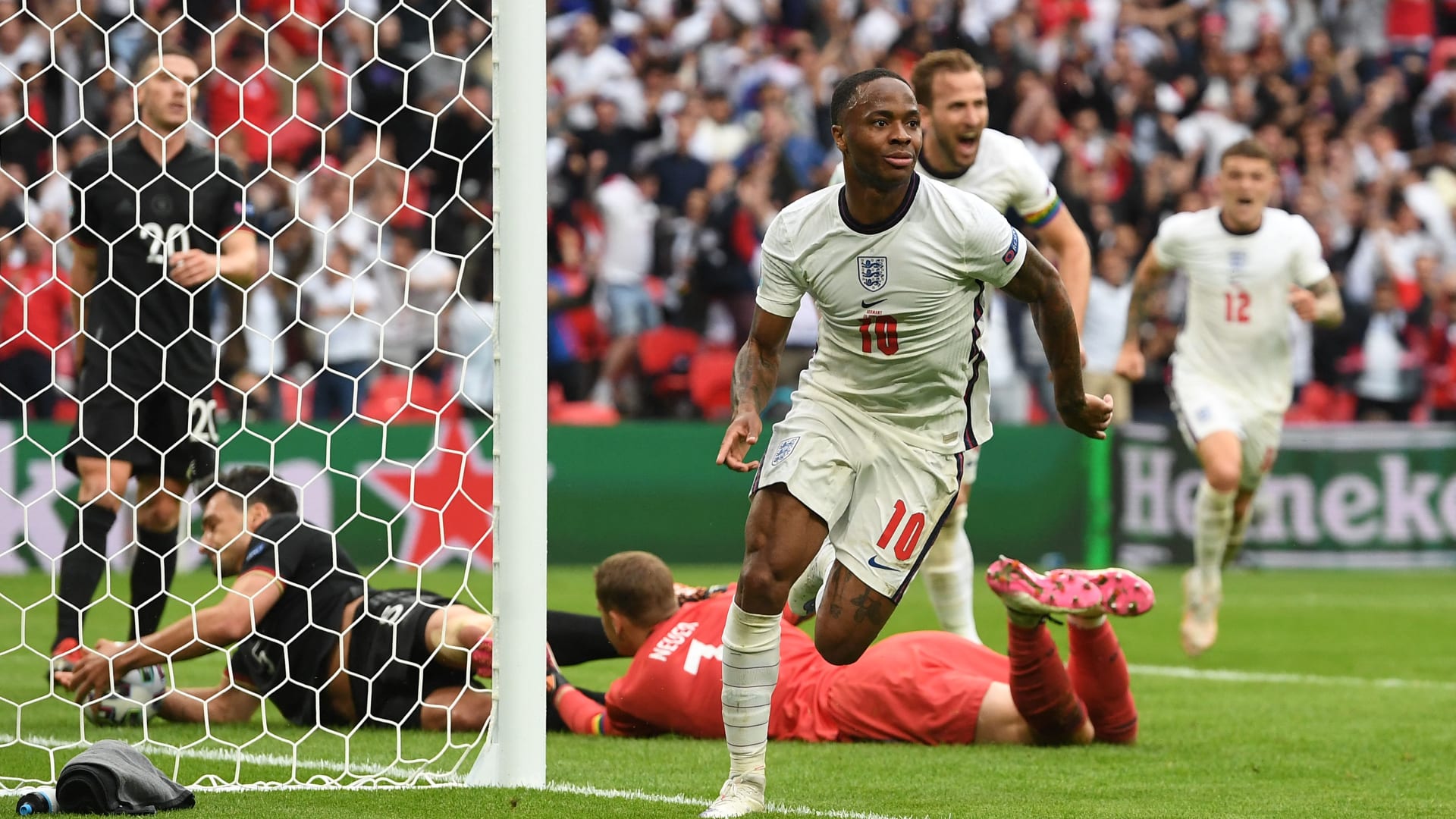 دبي، الإمارات العربية المتحدة (CNN)– حقق المنتخب الإنجليزي لكرة القدم فوزًا تاريخيًا على منافسه الألماني بهدفين مقابل لا شيء، في المباراة التي جمعت الفريقين على ملعب ويمبلي، الثلاثاء، لتتأهل إنجلترا إلى الدور ربع النهائي من بطولة يورو 2020 وتغادر ألمانيا من دور الـ16.