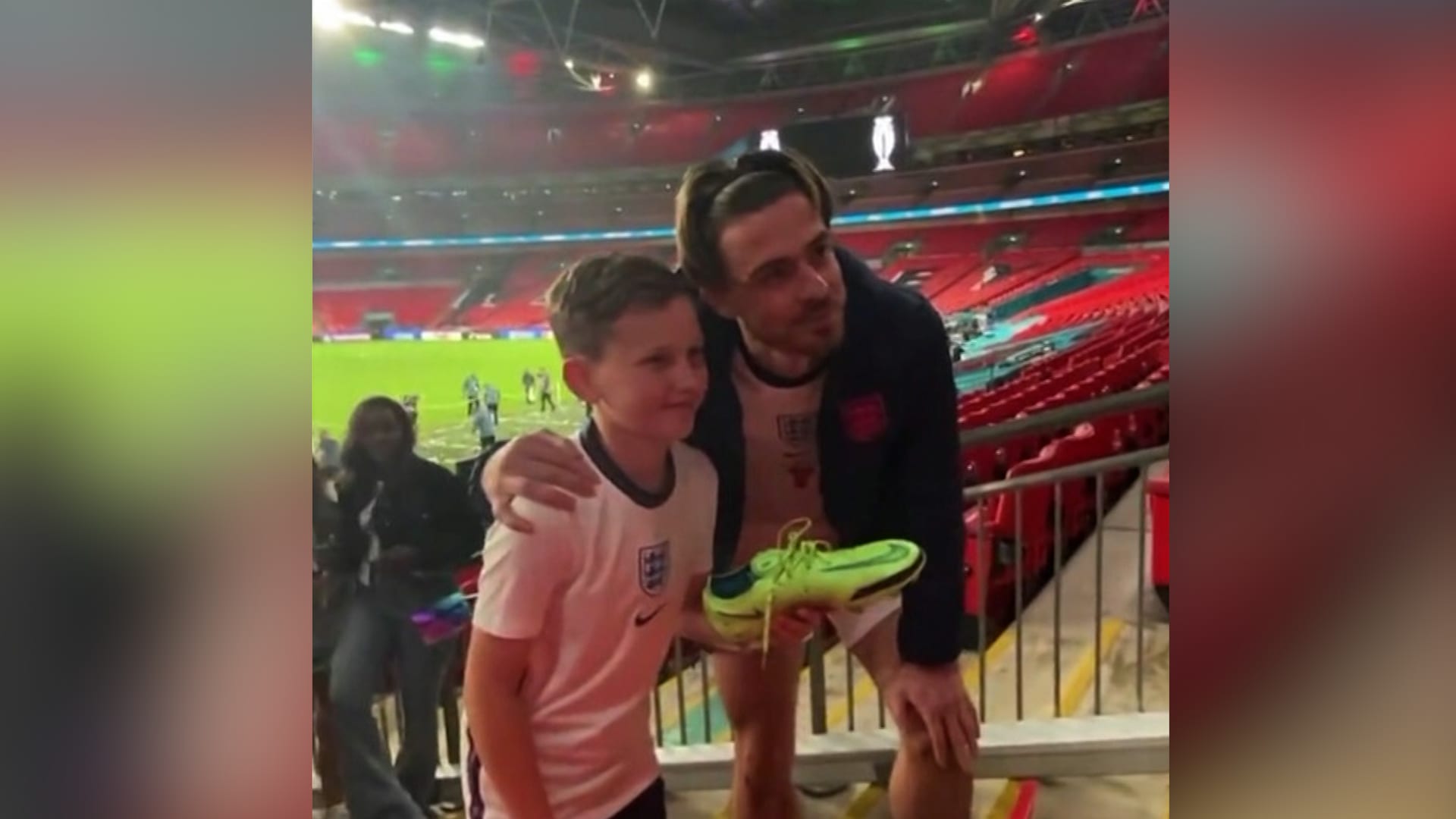 تصرف غريليش مع مشجع إنجليزي صغير يلقى رواجًا على الإنترنت.. شاهد كيف تعامل معه