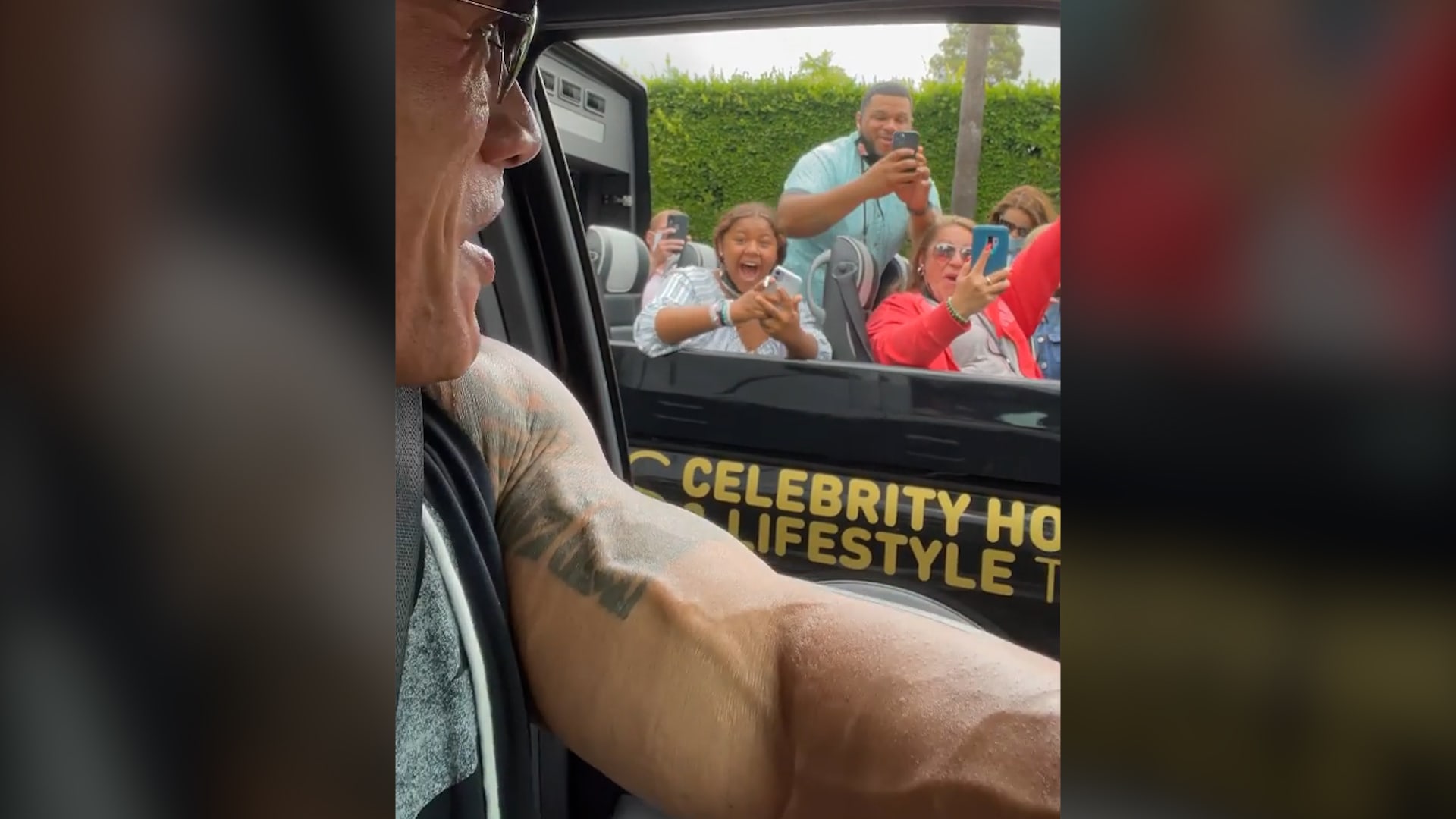 فاجأ الممثل دوين “الصخرة” جونسون مجموعة كانت بحافلة سياحية في لوس أنجلوس، حيث انفعل رواد الحافلة وتهافتوا على التقاط صور ومقاطع فيديو للمثل.