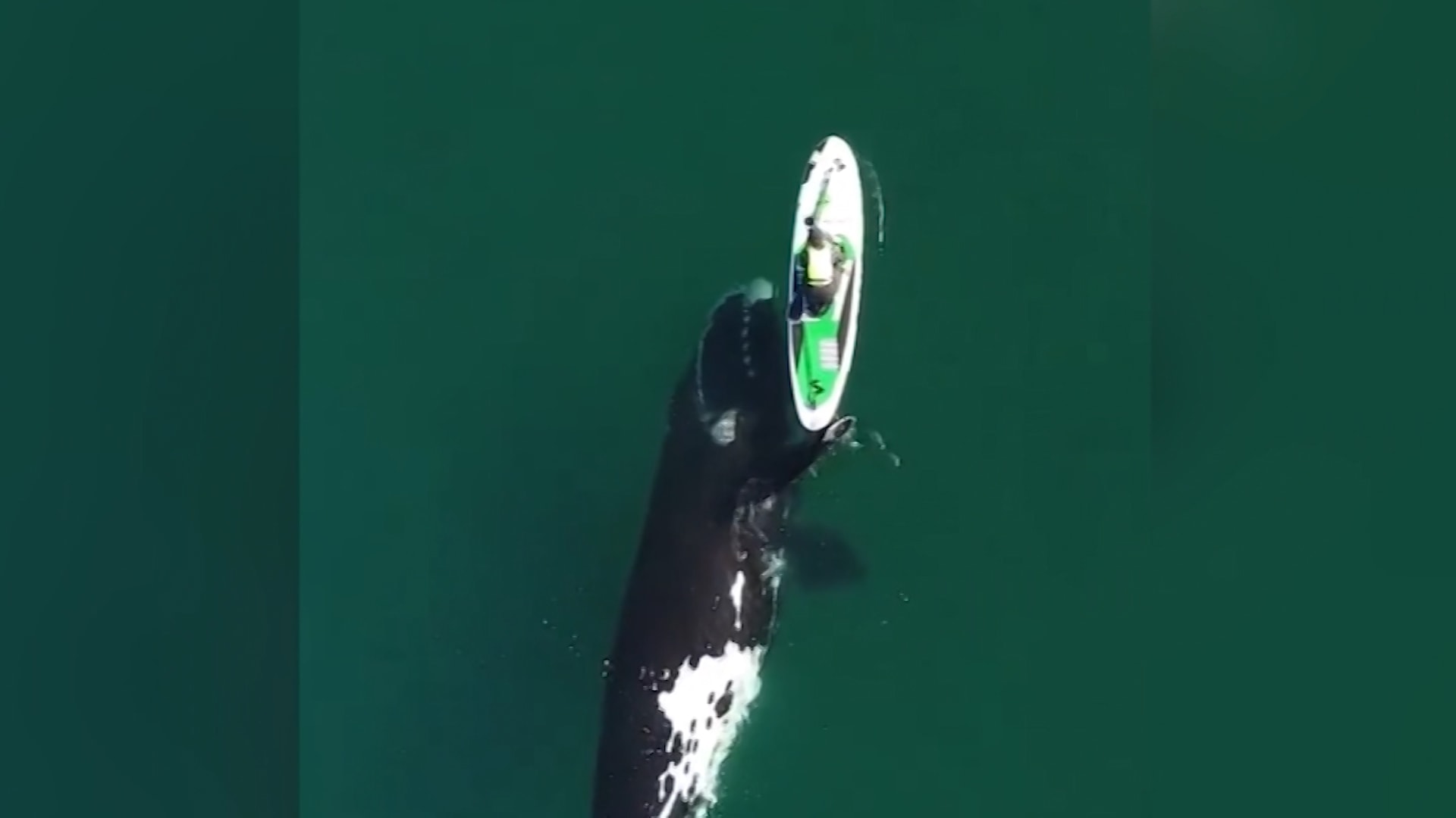 التقط المصور ماكسي جوناس بكاميرا درون مقطًعا رائعًا لحوت “فضولي” من فصيلة الحيتان الصائبة الجنوبية، والذي فاجأ سيدة كانت على لوح التجديف الخاص بها في بويرتو مادرين الأرجنتين.