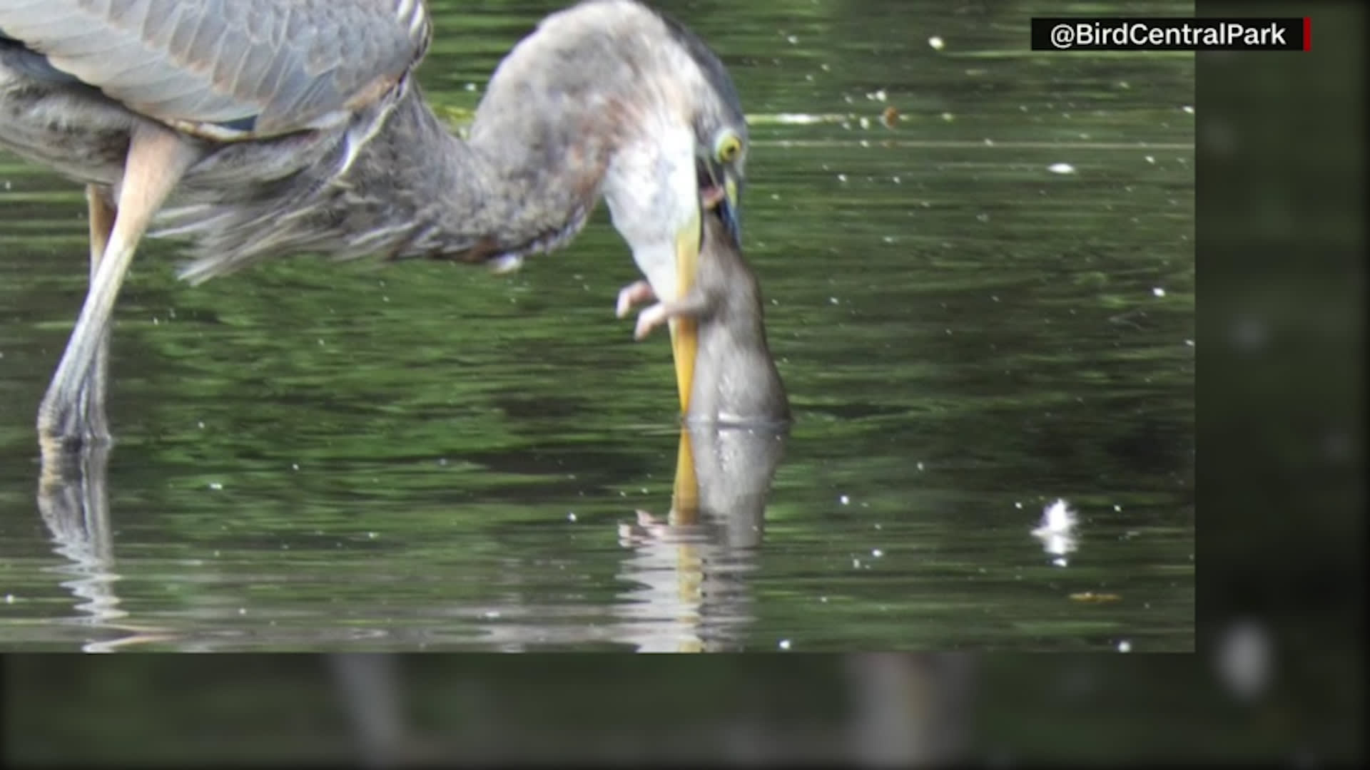 شاهد اللحظة التي ابتلع فيها بط هيرون الأزرق فأرًا كبيرًا في مرة واحدة.