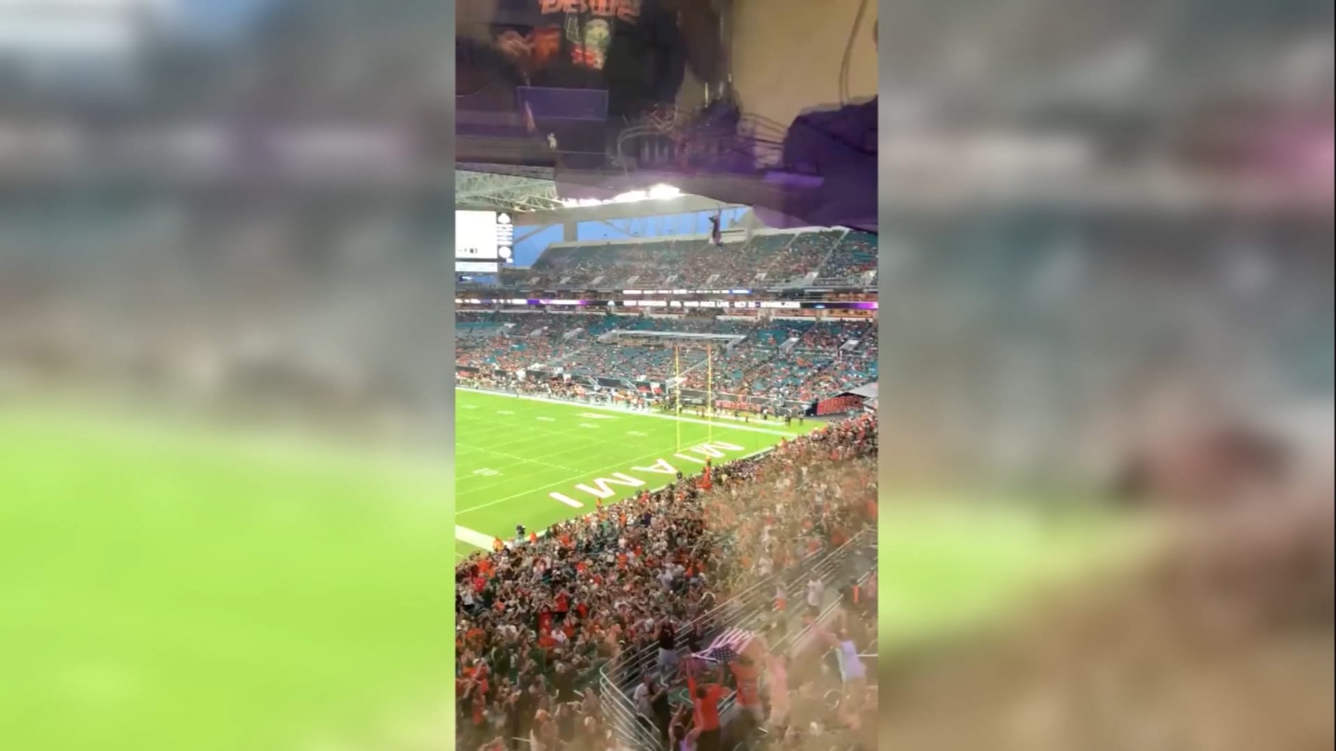 شقت قطة طريقها إلى استاد “هارد روك” خلال إحدى مباريات كرة القدم الأمريكية بمدينة ميامي، وتدلَّت من طرف السقف العلوي للملعب قبل أن تسقط، ولكن أمسكت مجموعة من المشجعين بعلم أمريكا أسفل موقع القطة لإنقاذها.