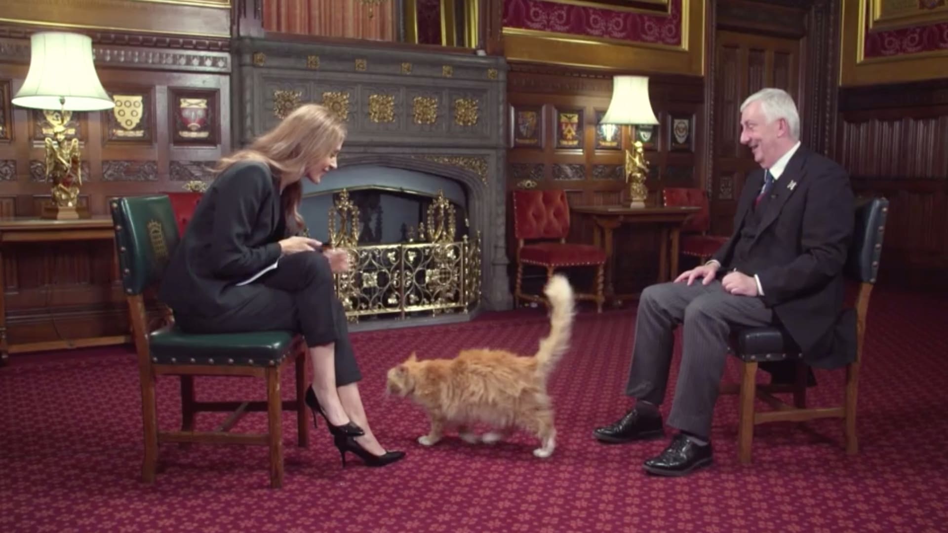 شاهد.. قط يفاجىء مذيعة CNN على الهواء خلال مقابلة مع رئيس مجلس العموم البريطاني