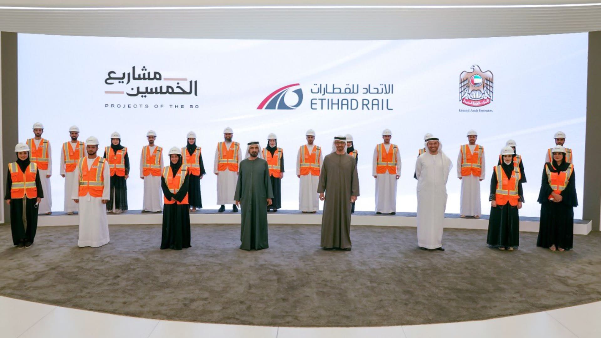 دبي، الإمارات العربية المتحدة (CNN)– شهد الشيخ محمد بن راشد، نائب رئيس الإمارات رئيس الوزراء حاكم دبي، والشيخ محمد بن زايد، ولي عهد أبوظبي نائب القائد الأعلى للقوات المسلحة، الإعلان عن برنامج الإمارات للسكك الحديدية (قطار الاتحاد).