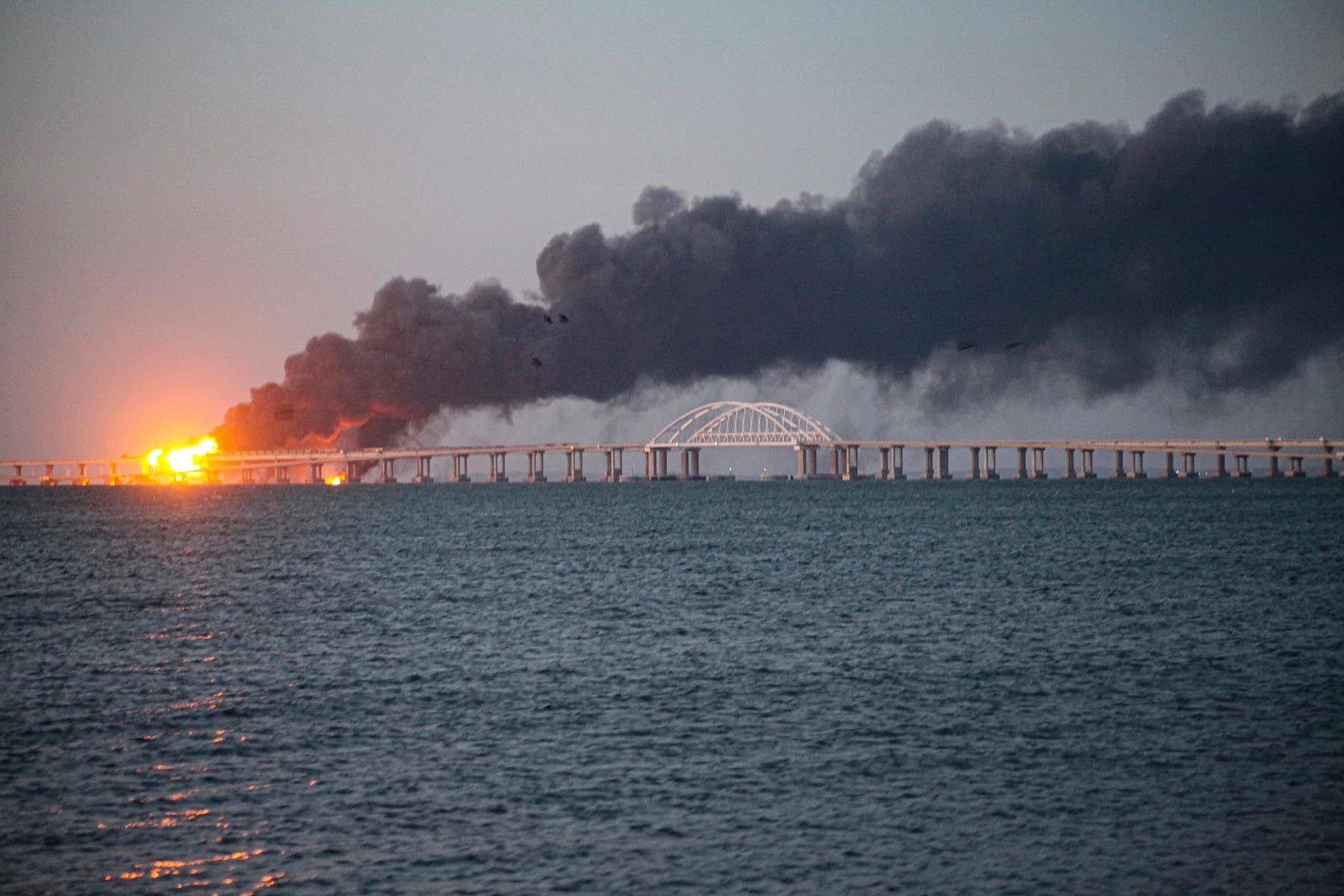 جسر أحلام بوتين يحترق في لحظات .. حقائق مذهلة عن جسر القرم