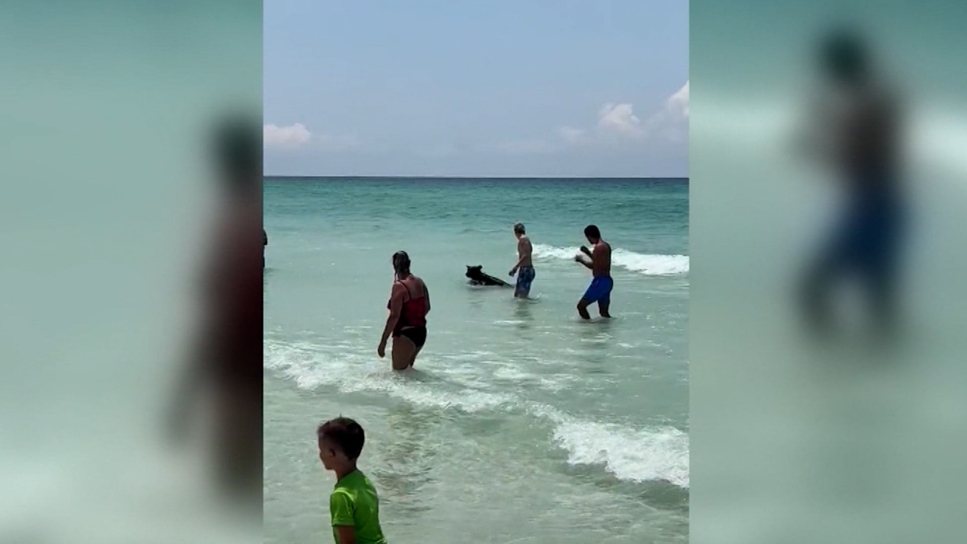 يظهر مقطع الفيديو دبًا أسودًا يسبح في خليج المكسيك قبالة مدينة ديستين في ولاية فلوريدا الأمريكية، الأحد، وسط حشد الشاطئ المذهول، ويبدو أن الدب استمر في الهروب إلى الكثبان الرملية القريبة.