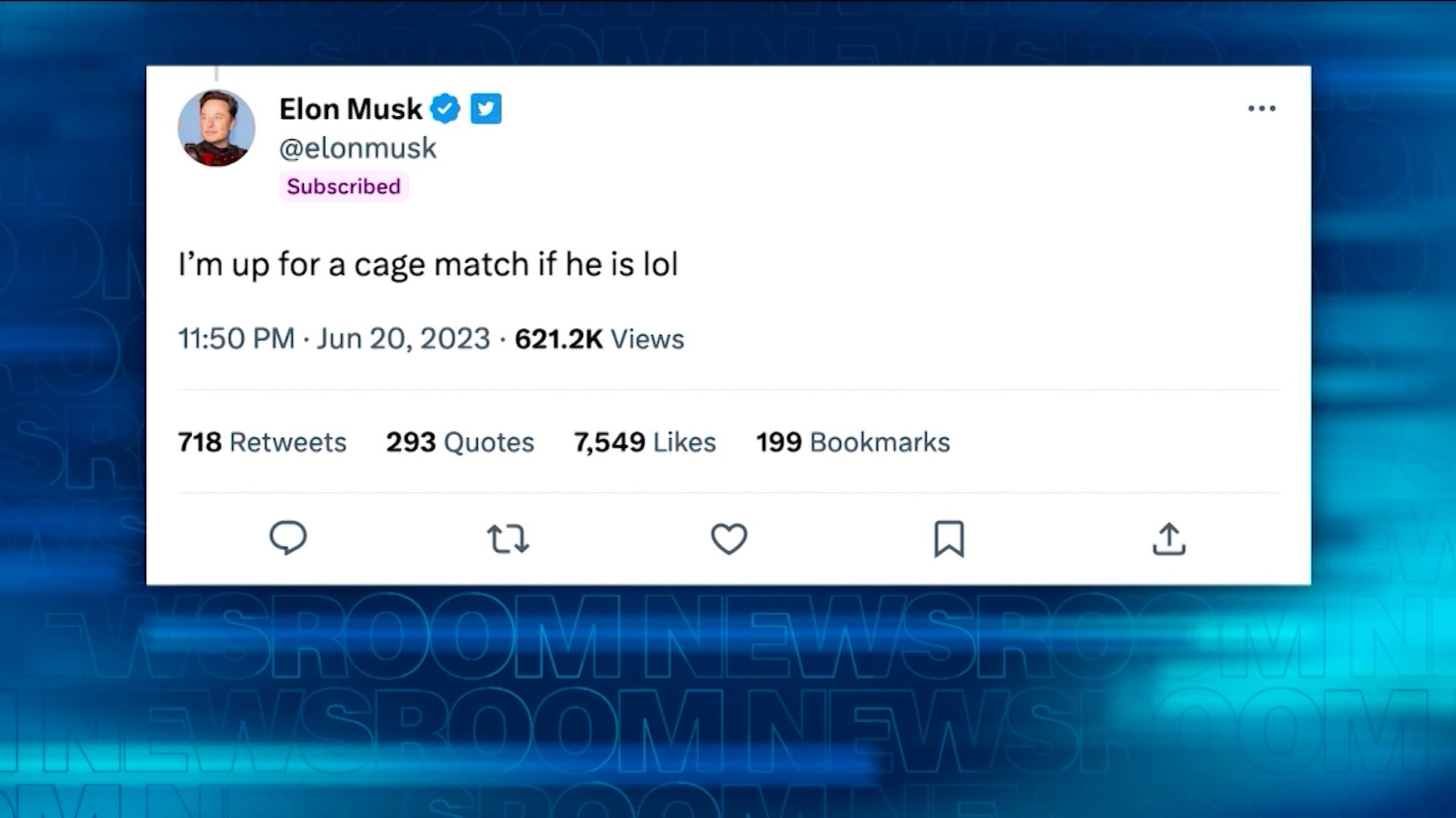 حيث غرد مالك تويتر والرئيس التنفيذي لشركة “تسلا”، إيلون ماسك، قائلًا إنه “مستعد لإجراء نزال في القفص مع مارك زوكربيرغ”، رئيس “ميتا” ومؤسس “فيسبوك”، والذي رد بدوره بنشر صورة لتلك التغريدة مع تعليق “أرسل لي الموقع”.