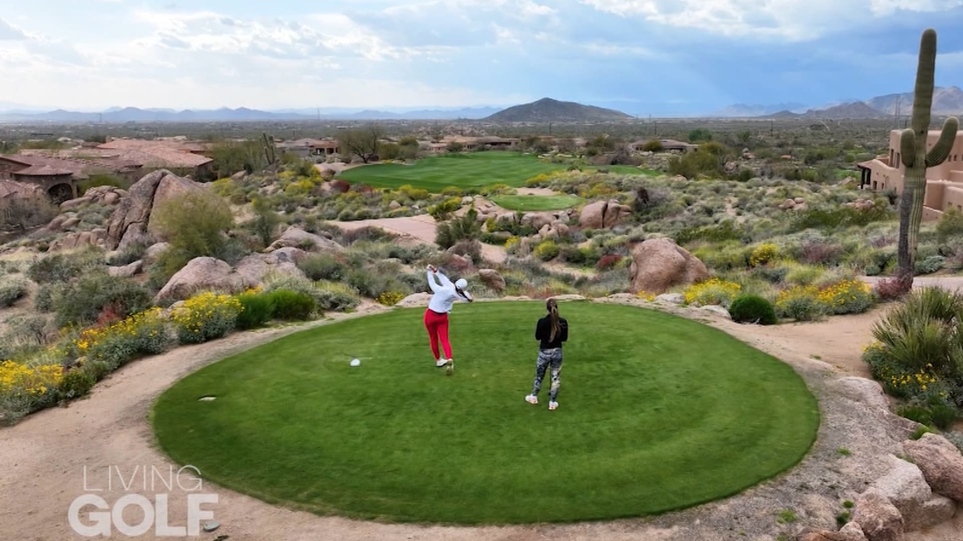 دعت موريسكو مقدمة برنامج Living Golf، ياسمين ساندرز، للانضمام إليها للتدريب على لعب الغولف بالصحراء، في ملعب “ترون نورث” المرموق بمنطقة فينيكس.