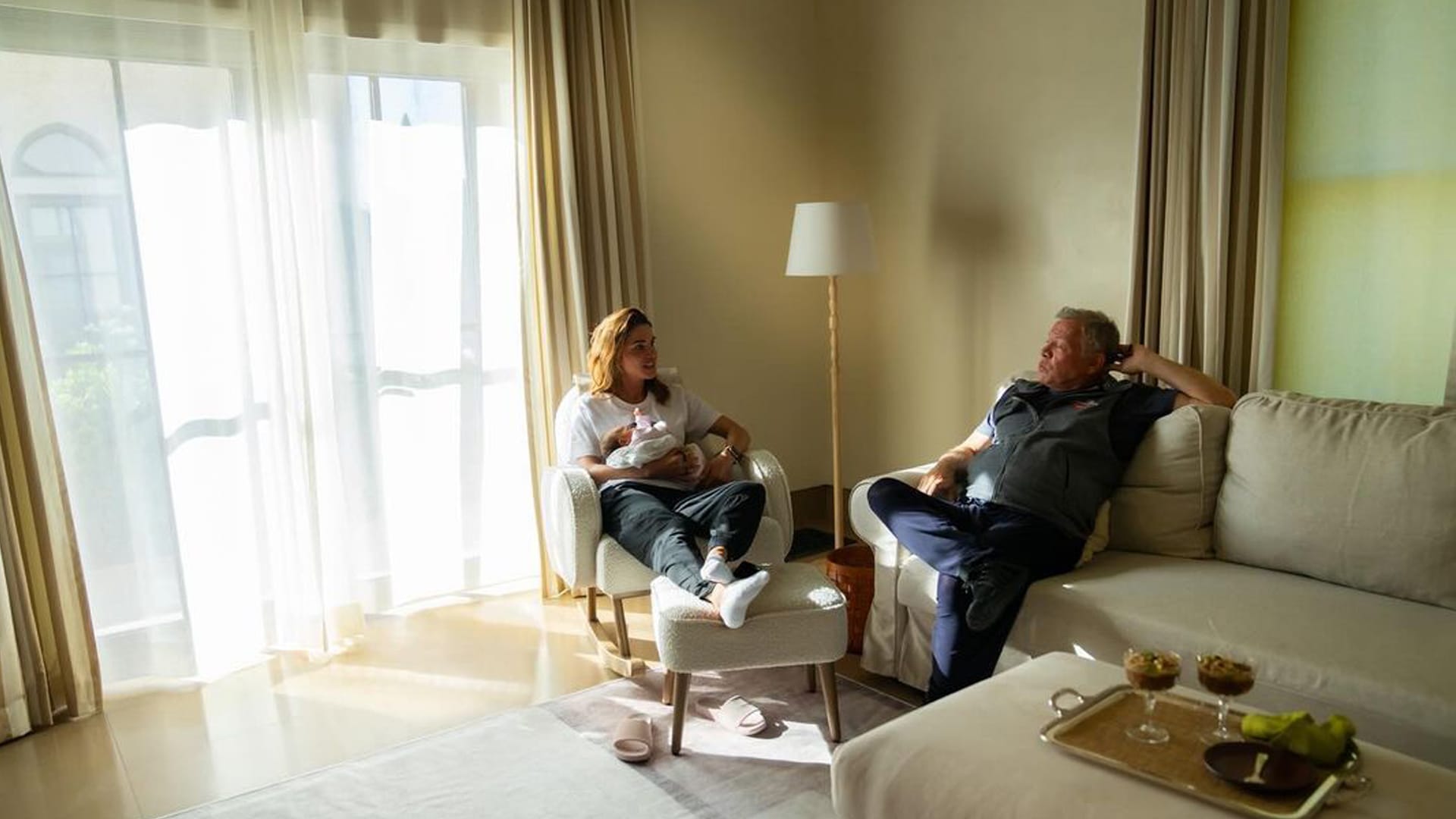 وخلال الأسبوع الماضي، حقق الظهور الأول للأميرة رجوة الحسين، بعد نحو أسبوع من ولادتها للأميرة إيمان بنت الحسين، وصورتها إلى جانب ولي عهد الأردن الأمير الحسين بن