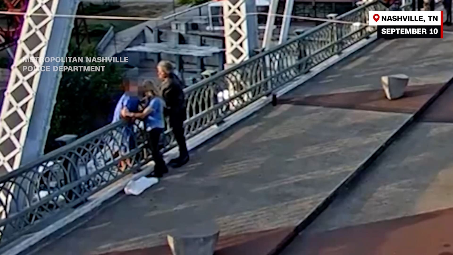 بعد دقيقة تقريبًا، بدا أنهما أقنعا السيدة بتسلق السوق والعودة إلى مكان آمن.لم يتم الكشف عن اسم السيدة. كان بون جوفي على الجسر لتصوير فيديو غنائي، بحسب ما قاله مصدر مطلع على الأمر لـCNN.تواصلت CNN مع بون جوفي للحصول على تعليق.