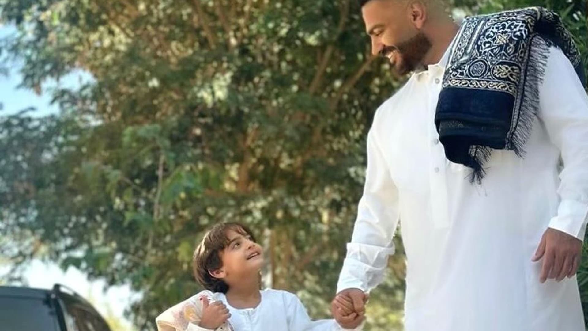 دبي، الإمارات العربية المتحدة (CNN)– نشر تامر حسني صورة تجمعه بابنه آدم، الجمعة، عبر حسابه الرسمي على إنستغرام، ظهر فيها الأب وابنه بالثوب الأبيض، ويضع كل منهما سجادة على كتفه، وحققت الصورة تفاعلاً واسعاً بين محبي النجم المصري.