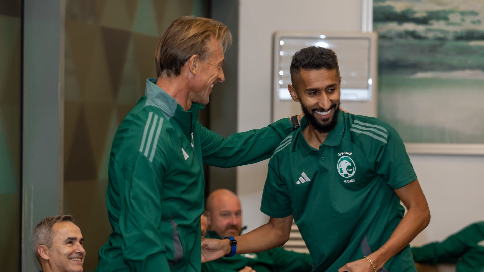 وأثناء تواجد بعثة منتخب “الأخضر” في مطار الملك خالد الدولي قبل السفر إلى مدينة ملبورن الأسترالية، فجر السبت، التقى الفرج برينارد، وحرصا على عناق بعضهما والتحدث معا.