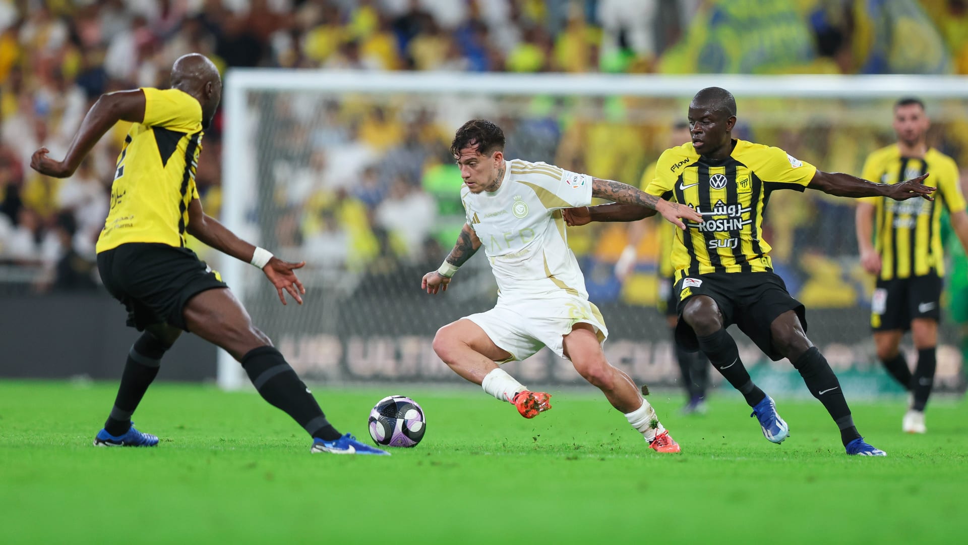 مشاجرة بين بنزيما وأوتافيو خلال مباراة الاتحاد والنصر