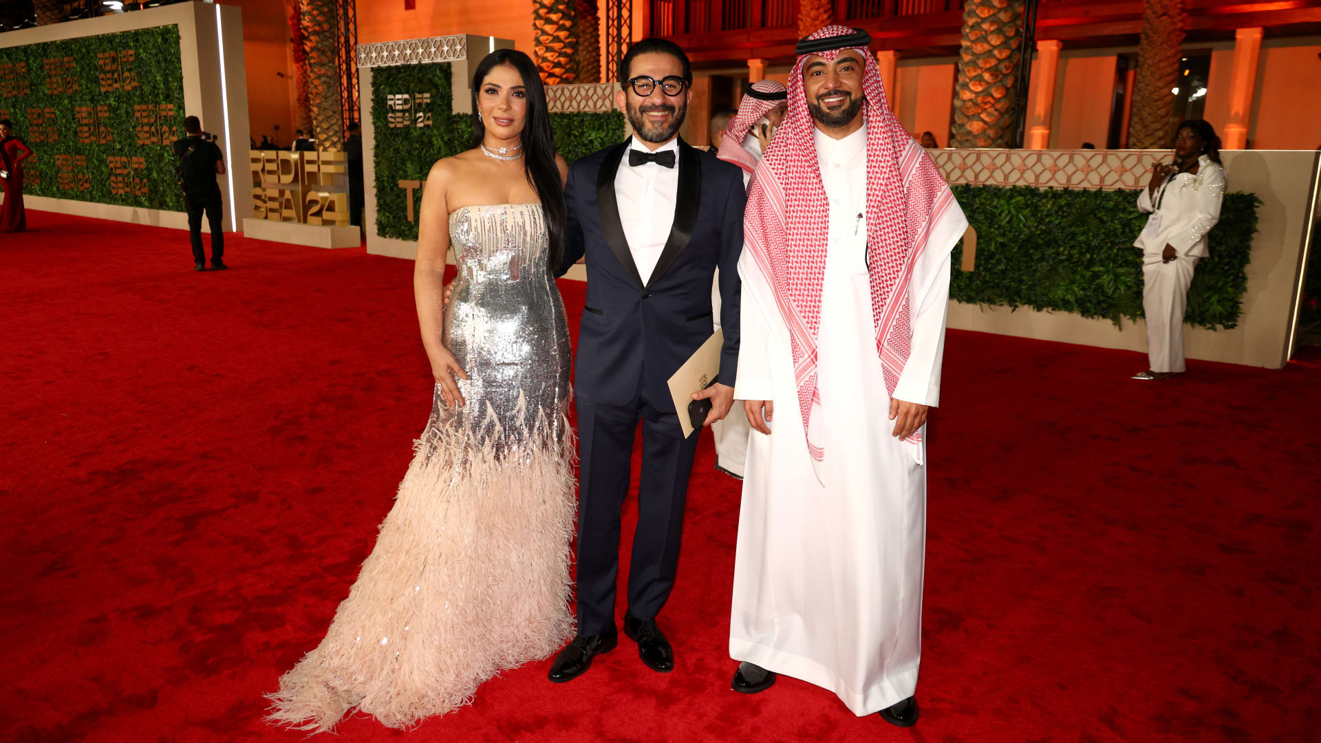 حيث “مازح” أحمد حلمي الملحن المصري مصطفى جاد، وبجواره زوجته الممثلة كارمن سليمان، حيث كانا يجلسان في الصف الأول بالمسرح، قائلا: “أهلا أهلا أهلا وسهلا صف أول أهلا وسهلا..أنت منين؟”: ليرد جاد: “من مصر”، فقال حلمي “مصري وصف أول؟ أكيد معزوم”، وسط ضحكات وتصفيق الحضور.