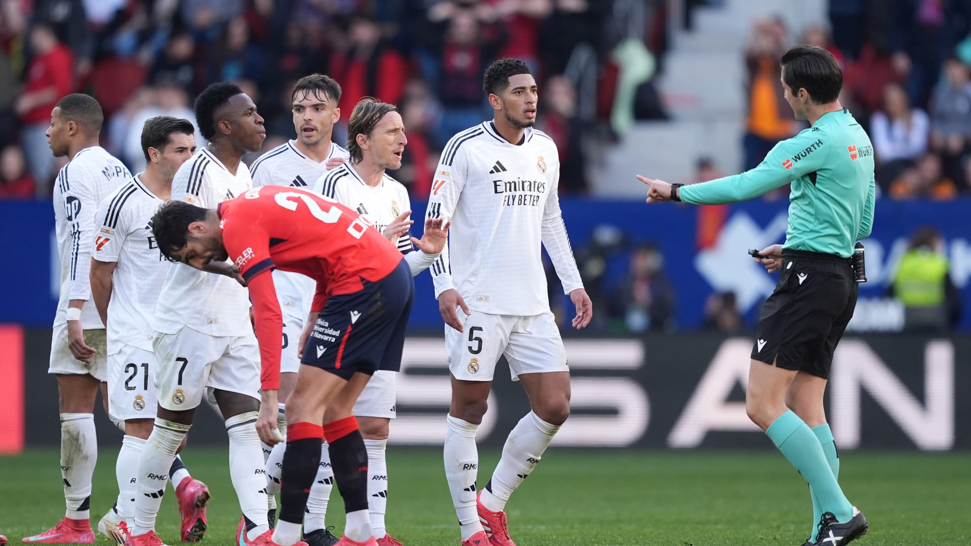 وجاءت هذه العقوبة على بيلينغهام بعد أيام من طرده في مباراة فريق “الميرنغي” ونظيره أوساسونا، ضمن مباريات الجولة الـ24 من مسابقة “لا ليغا” هذا الموسم 2025/2024.