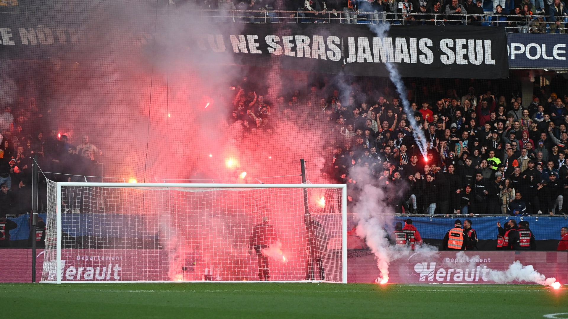 كان نادي سانت إتيان متقدماً بهدفين دون رد على مضيفه مونبلييه، المهدد بالهبوط، بعد مرور ساعة على زمن اللقاء، قبل أن يُوقف الحكم المباراة عقب شغب جماهيري.