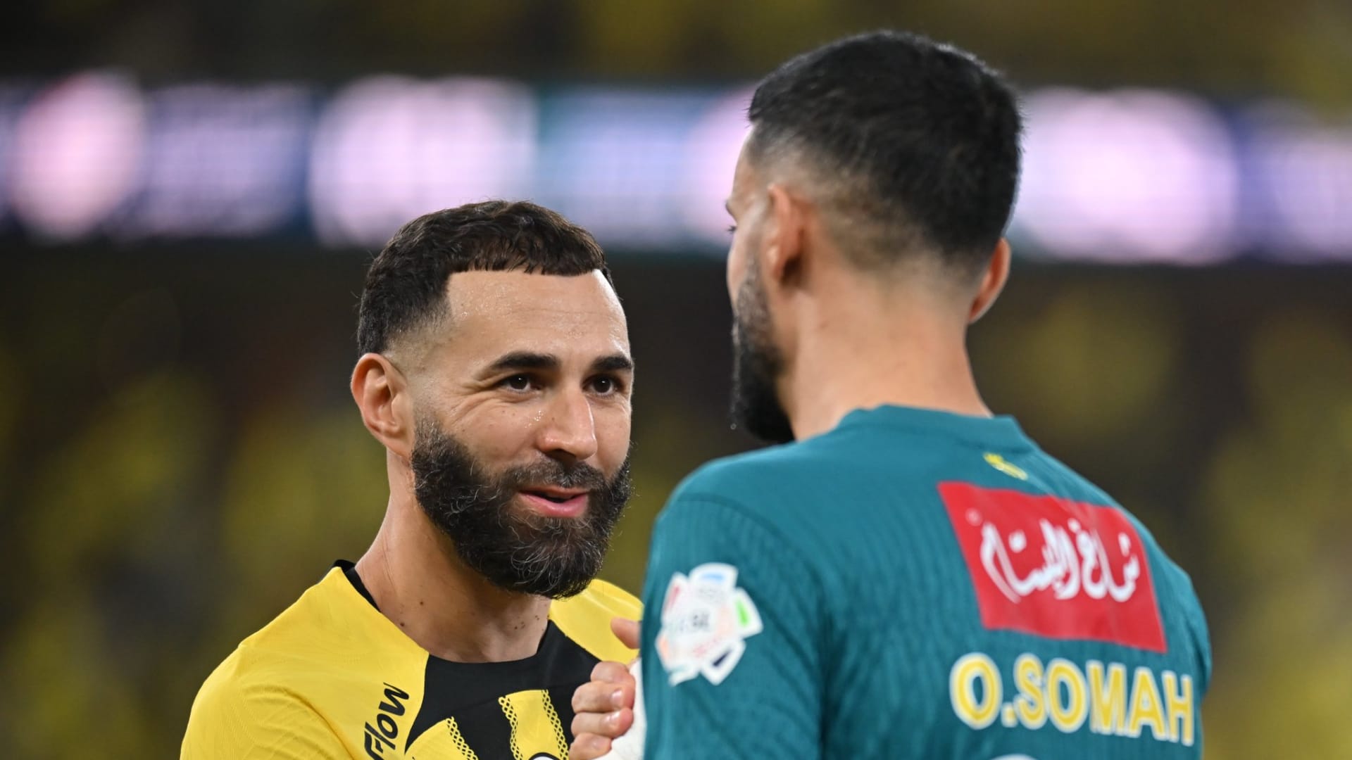 وقبل صافرة بداية المباراة وخلال وقوف اللاعبين في منتصف الملعب، صافح بنزيما منافسه السومة، وبدت علامات السعادة على وجه اللاعب الفرنسي.