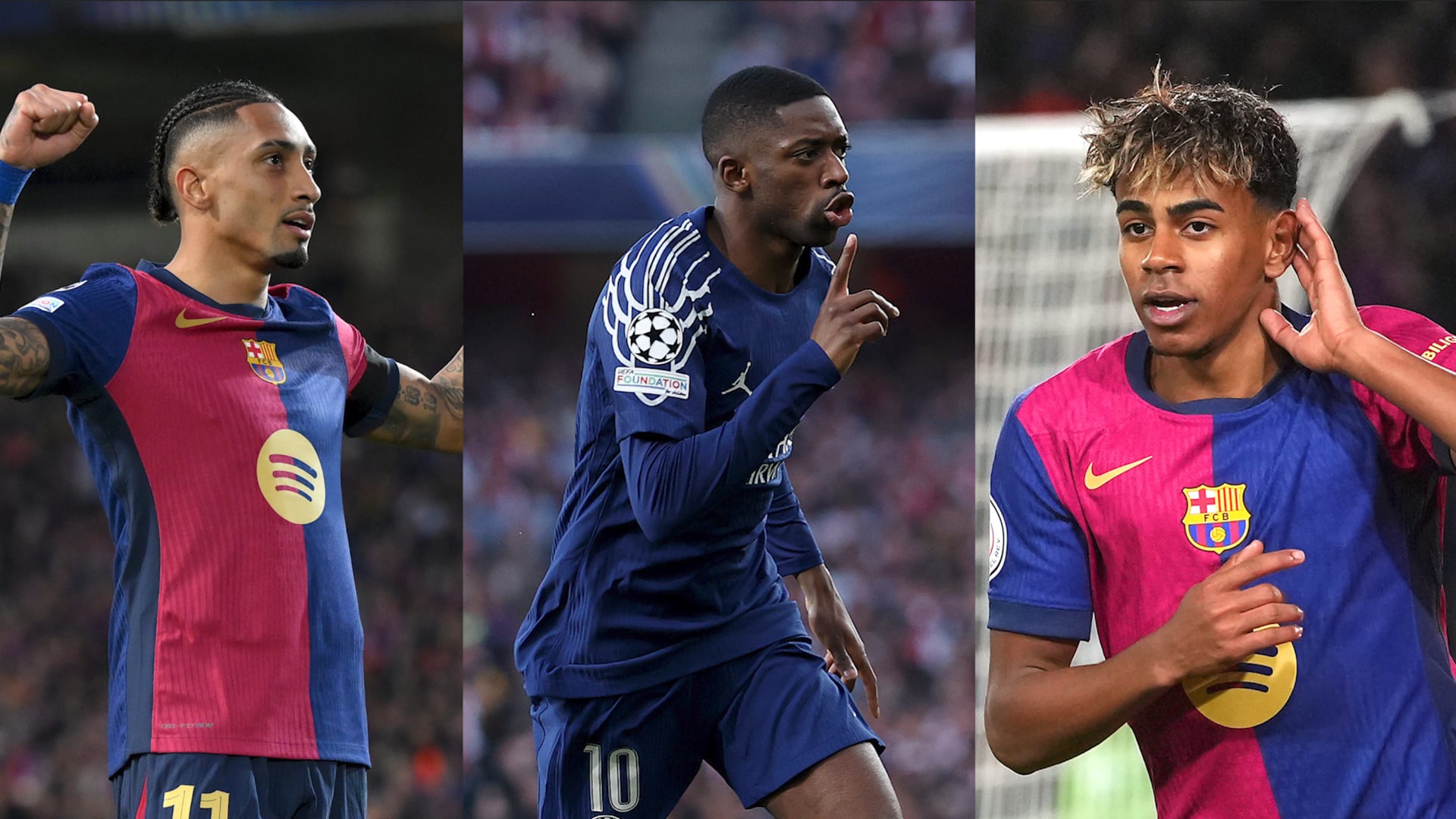(CNN) — يتنافس نجوم برشلونة لامين يامال ورافينيا وبيدري ونجم باريس سان جيرمان، عثمان ديمبيلي، بين المشجعين على الأحقية بالترشيح للفوز بجائزة الكرة الذهبية هذا الموسم، نظرا للأداء الذي يقدمه اللاعبون الأربعة هذا الموسم، نستعرض أبرز أرقام هؤلاء اللاعبين في هذا الموسم حتى الآن.