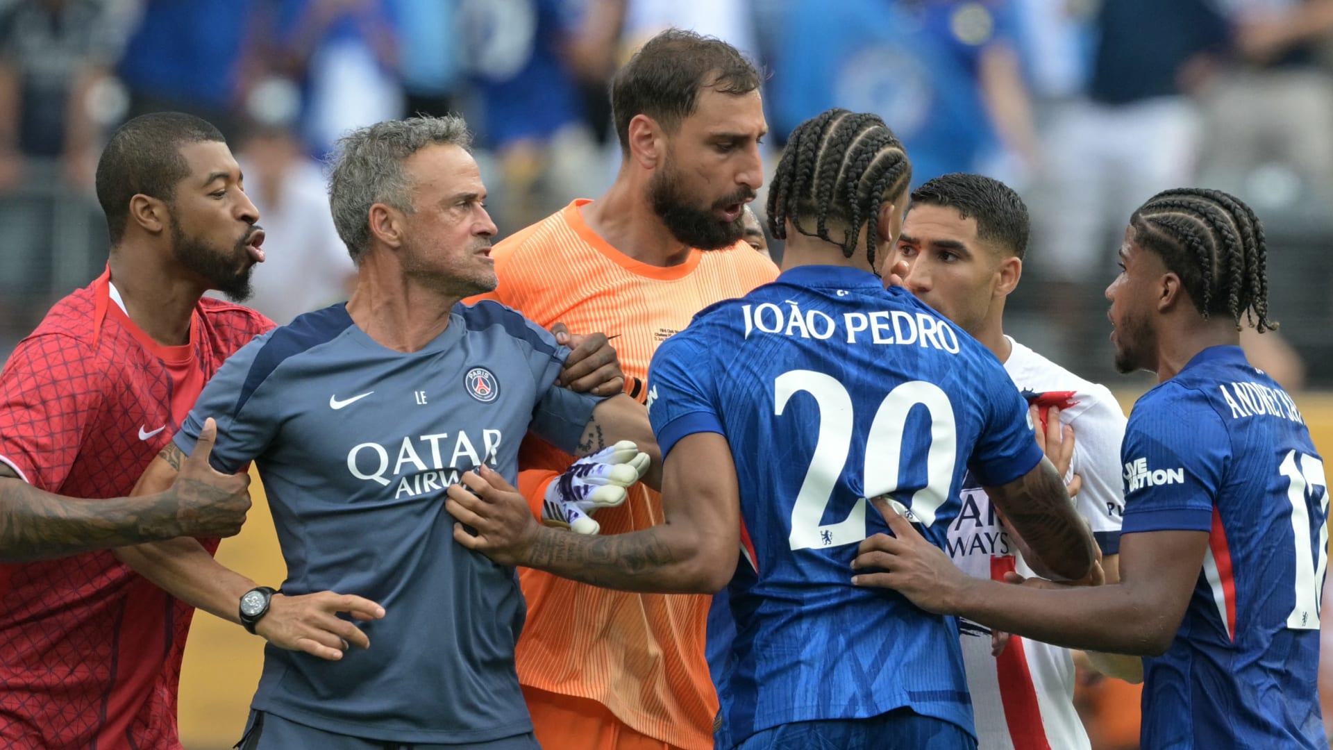 عقب صافرة النهاية بفوز “البلوز” بثلاثية نظيفة وتحقيقه للقب، تبادل جواو بيدرو، لاعب نادي تشيلسي، الكلمات مع لويس إنريكي، المدير الفني للنادي الباريسي، قبل أن يعتدي الأخير بالضرب على اللاعب البالغ من العمر 23 عامًا، إذ بدا أنه يحاول صفعه وخنقه.