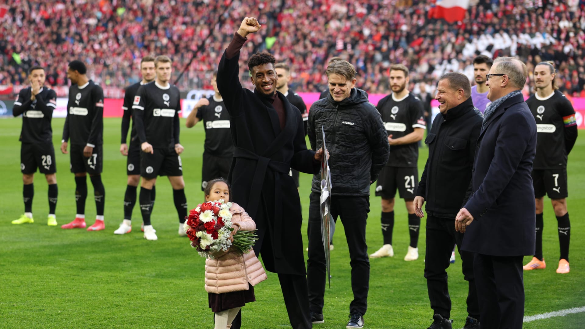 قبل إطلاق صافرة البداية، قدم مسؤولو فريق “البافاري” هدية تذكارية إلى كومان، وسط تحية من اللاعبين والجماهير المتواجدة في المدرجات.