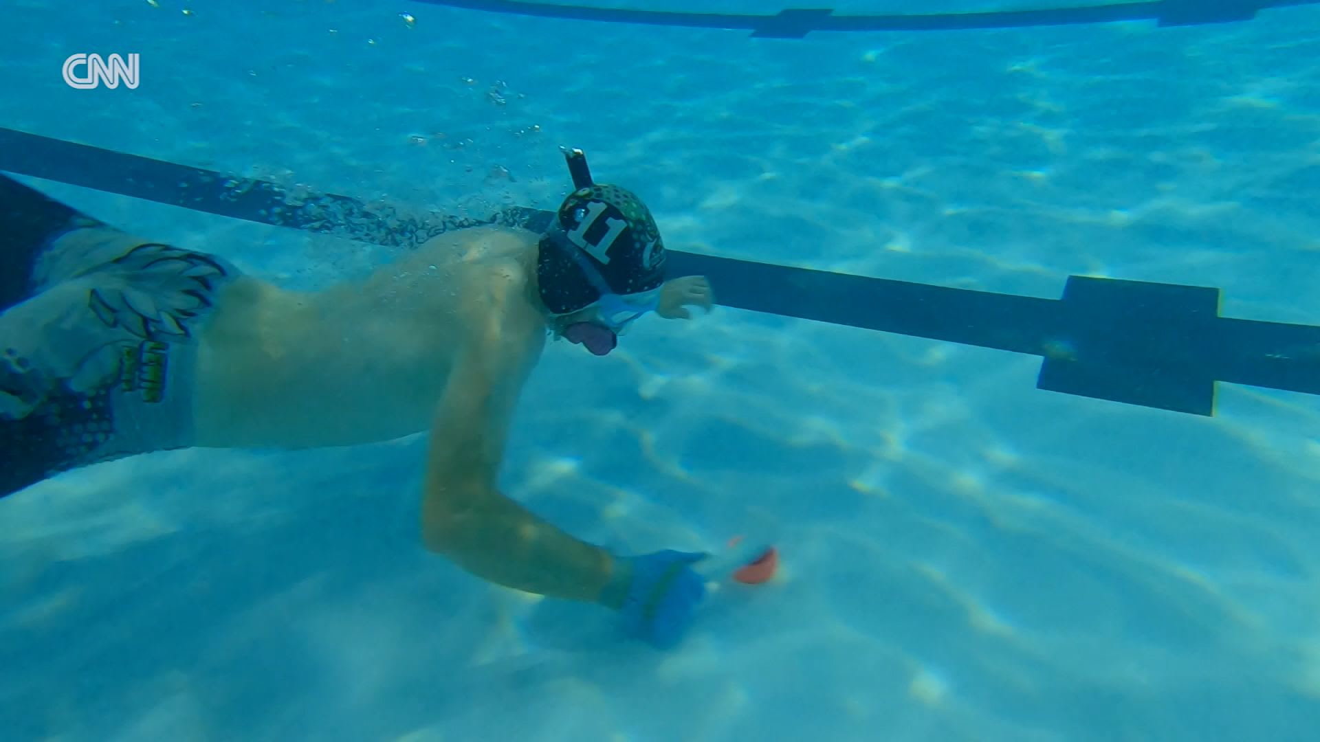 لويس كوكس، مؤسس نادي “أبوظبي داكس” للعبة الهوكي تحت الماء، يستبدل الجليد بالماء في هذه الرياضة التي تُمارس أثناء الغطس.