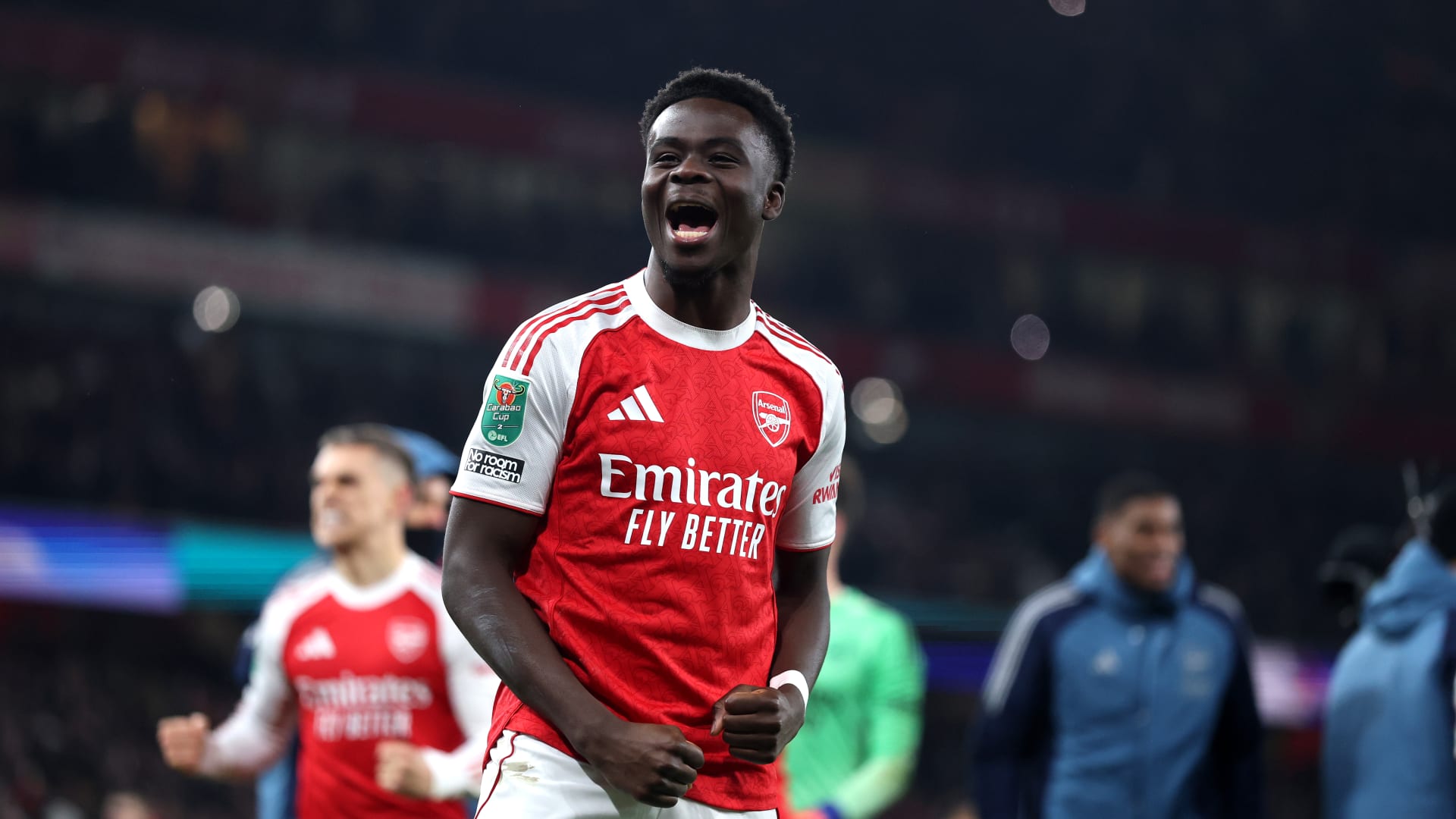 في ذلك الوقت، خلع بوكايو ساكا، البالغ من العمر 24 عاماً، حذاءه وأهداه لأحد المشجعين.