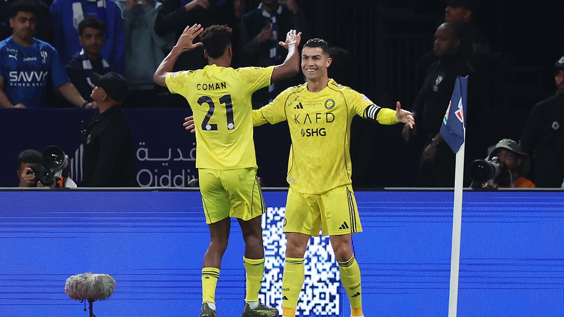 وتعرض رونالدو لموقف محرج خلال احتفاله بهدفه، إذ احتفل بطريقته الشهيرة “Siii” على خط الملعب، قبل أن يفقد توازنه ويسقط…